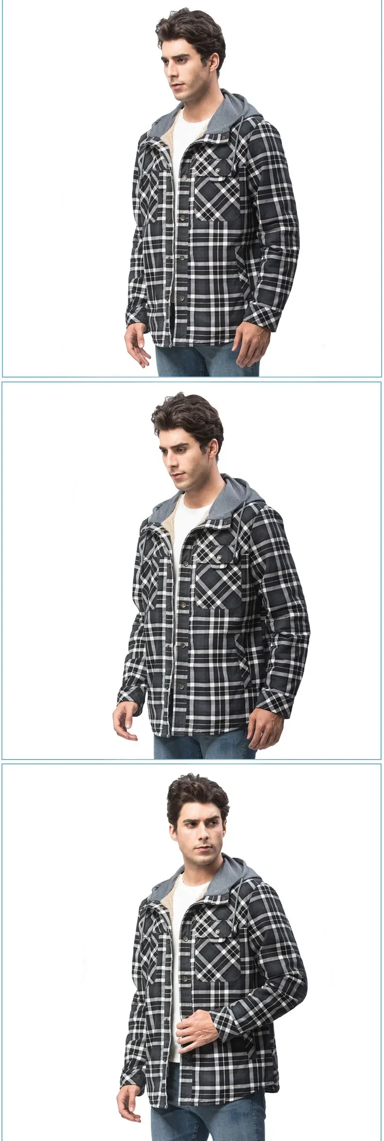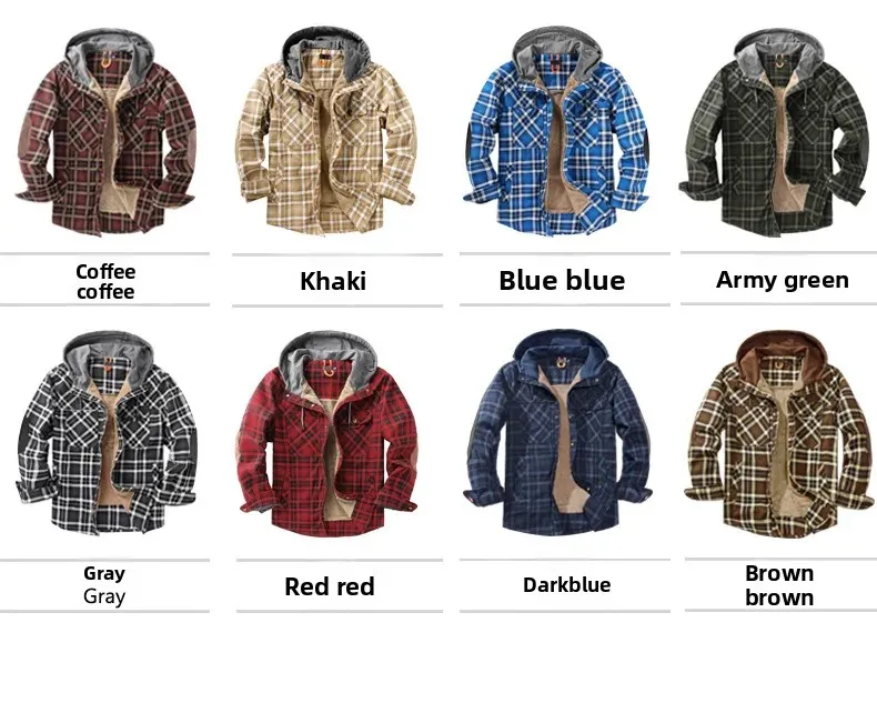 Thickened Fleece Long Sleeve Plaid Hooded Shirt for Men Winter Casual Cotton Jacket Large Size Cross-Border Men's Clothing